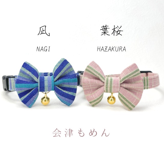 凪・葉桜 (2点セット) 成猫用 ハンドメイド首輪 会津もめん