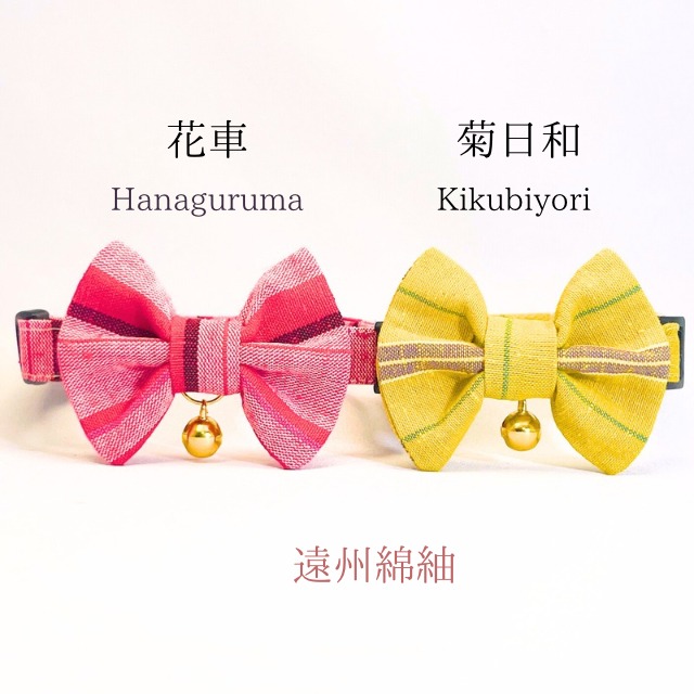 花車・菊日和 成猫用 ハンドメイド首輪 遠州綿紬