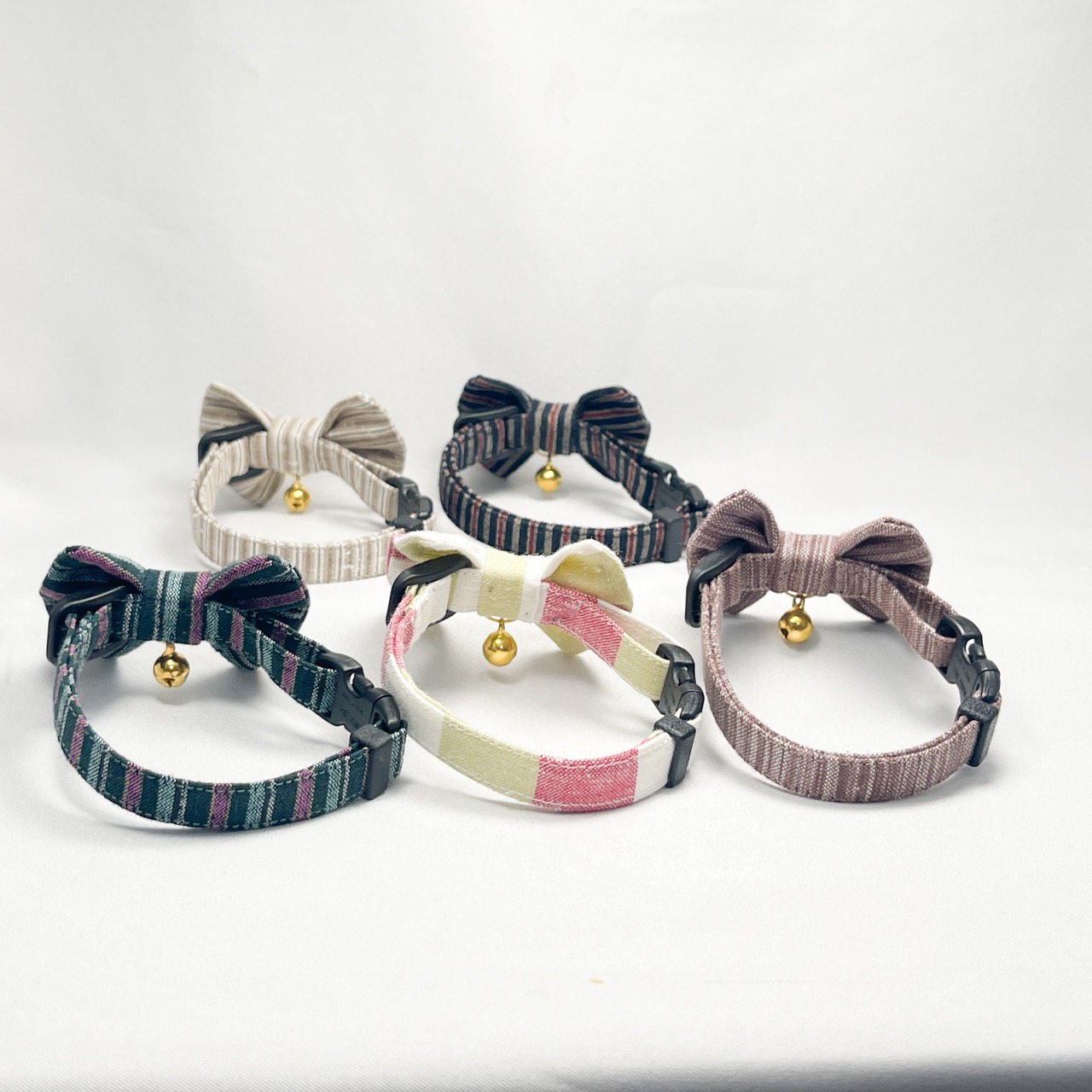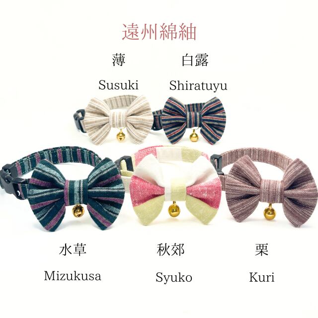 水草・春風・栗・薄・白露 5点セット 成猫用 ハンドメイド首輪 遠州綿紬