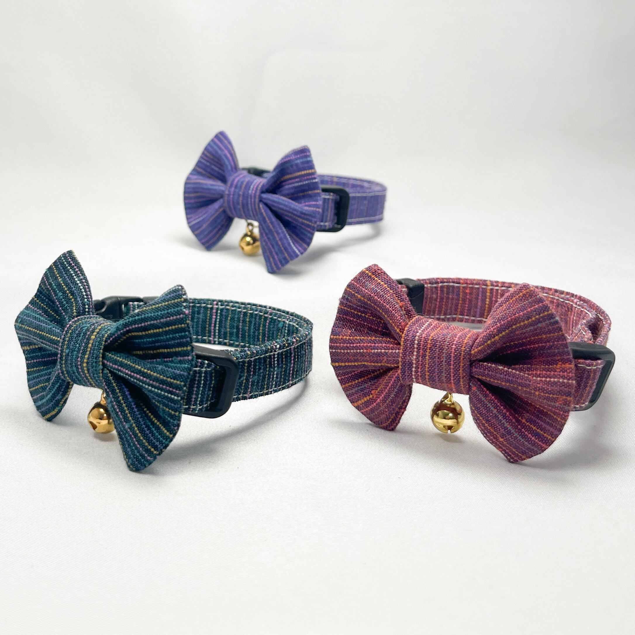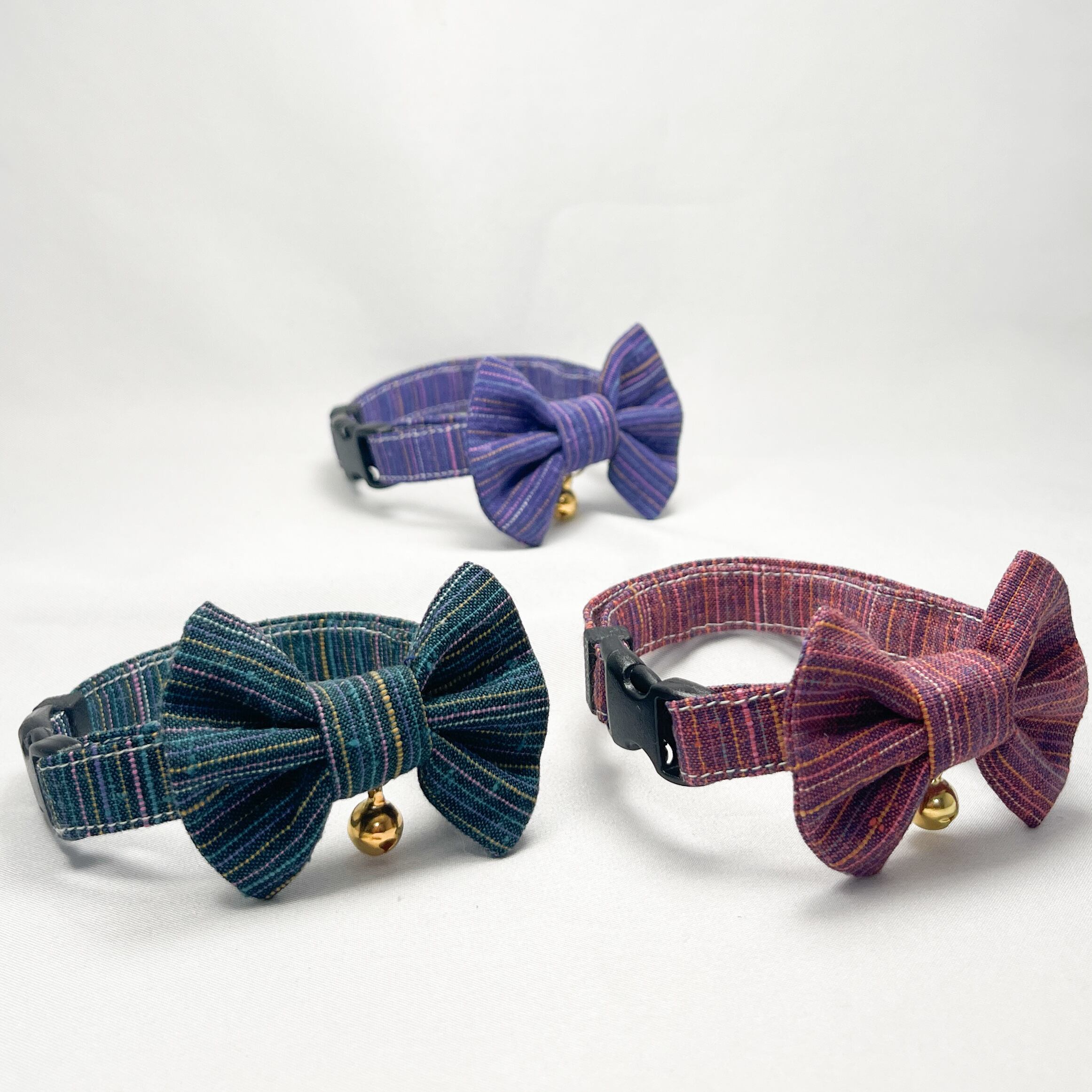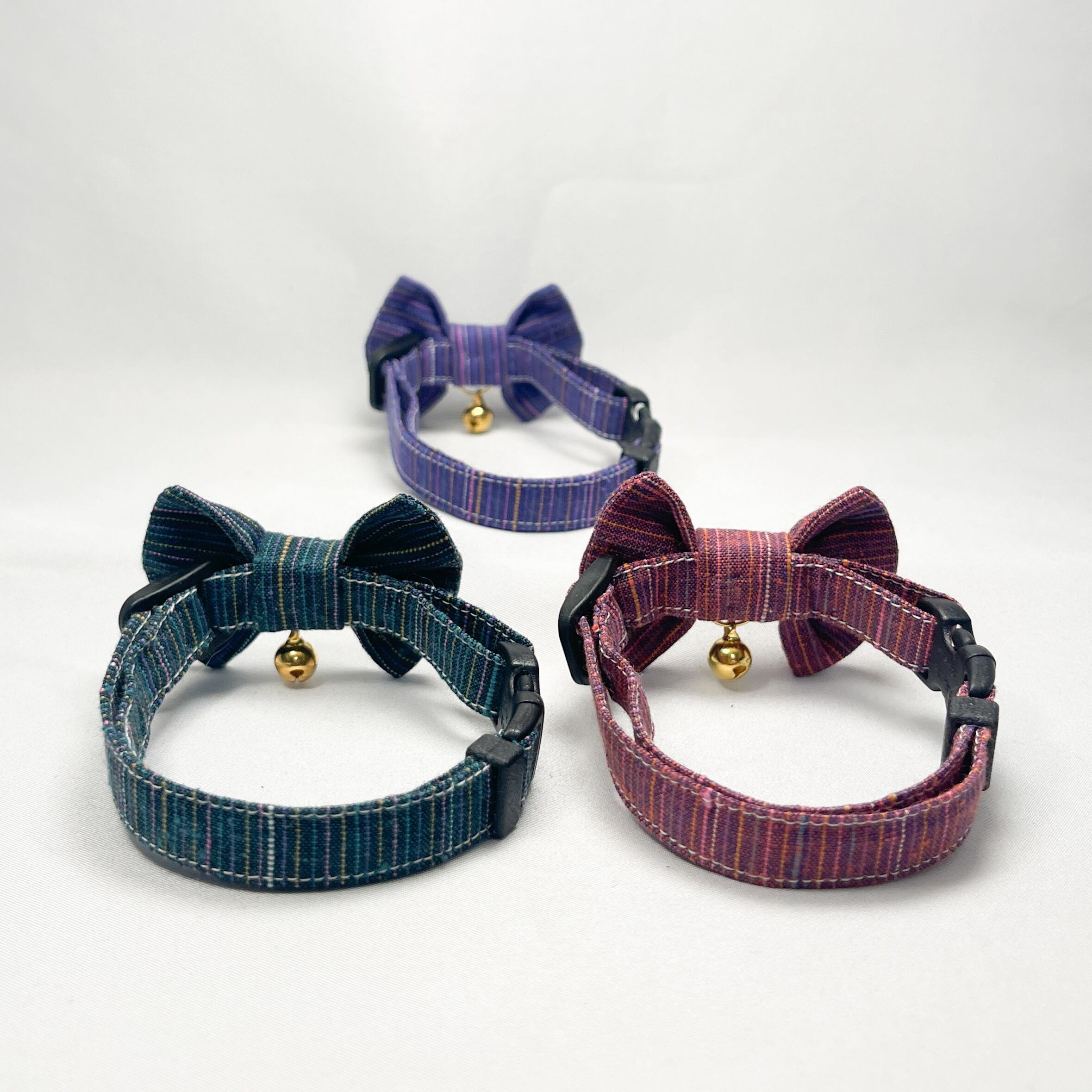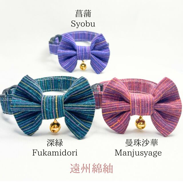 深緑 ・ 曼珠沙華・菖蒲 (3点セット) 成猫用ハンドメイド首輪 遠州綿紬