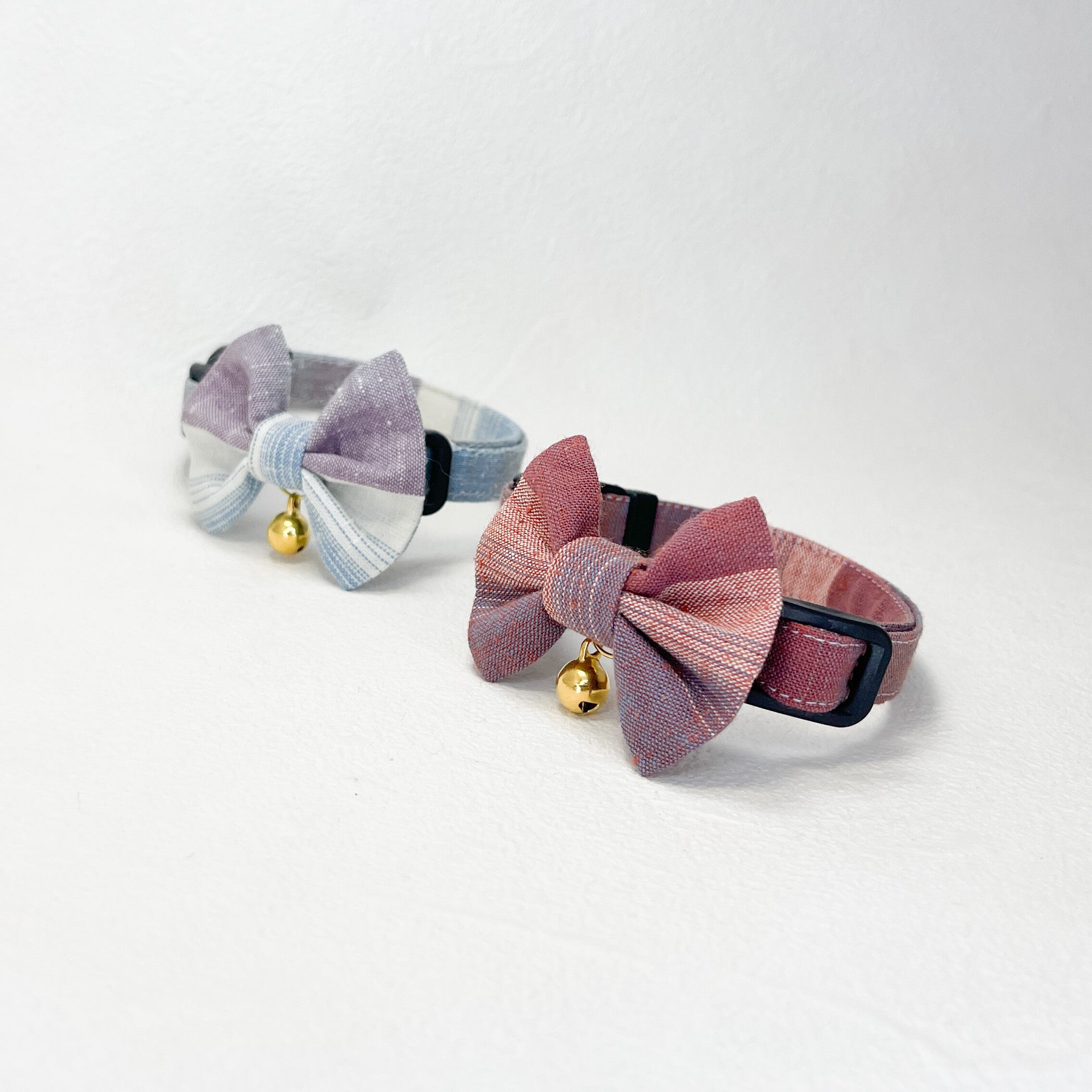 月白・暁 (2点セット) 成猫用 ハンドメイド首輪 遠州綿紬