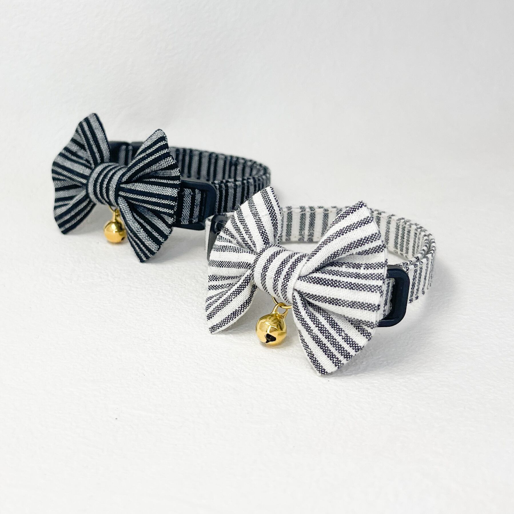 静寂・清流 (2点セット) 成猫用 ハンドメイド首輪 遠州綿紬
