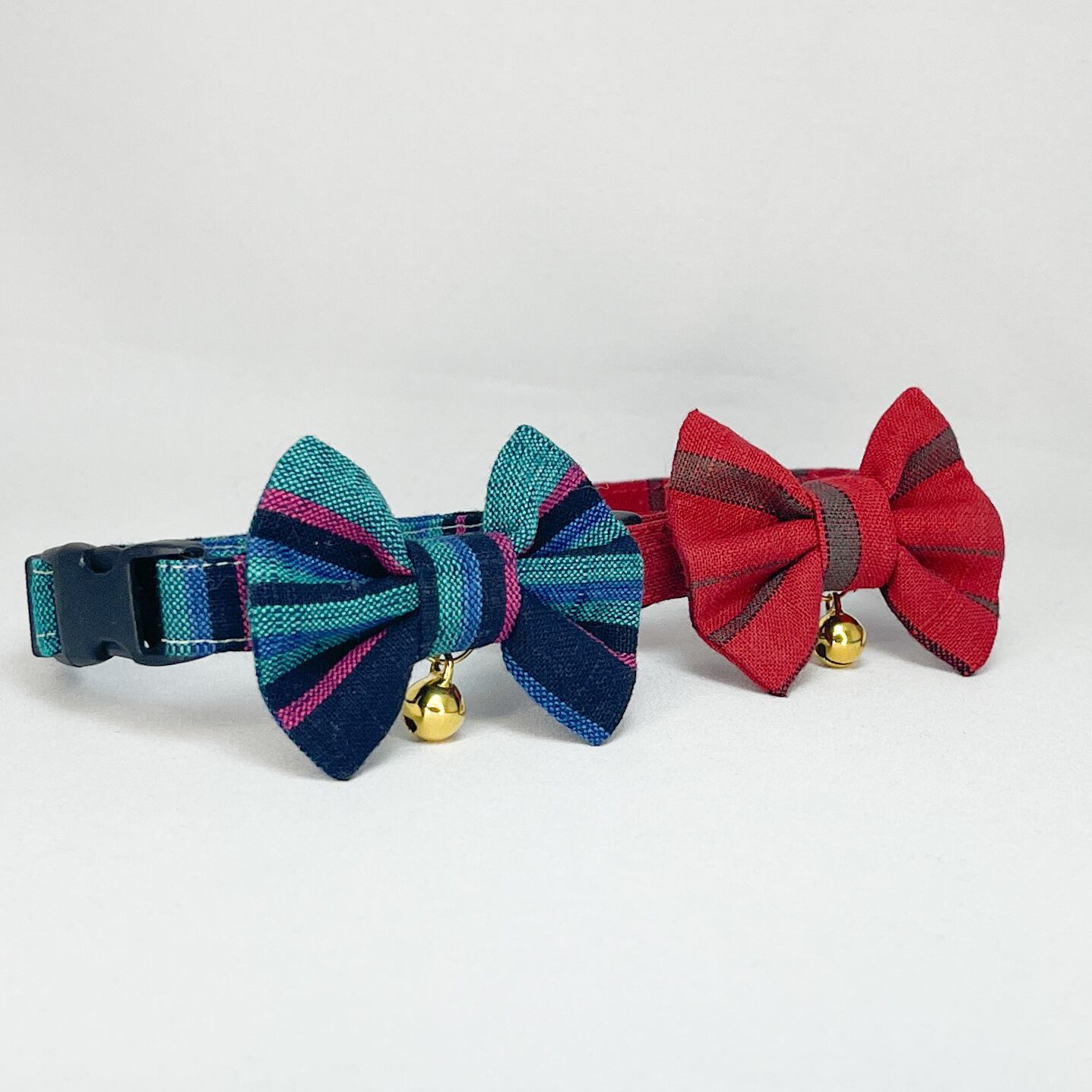 群青 ・ 暮色 (2点セット) 成猫用 ハンドメイド首輪 会津もめん