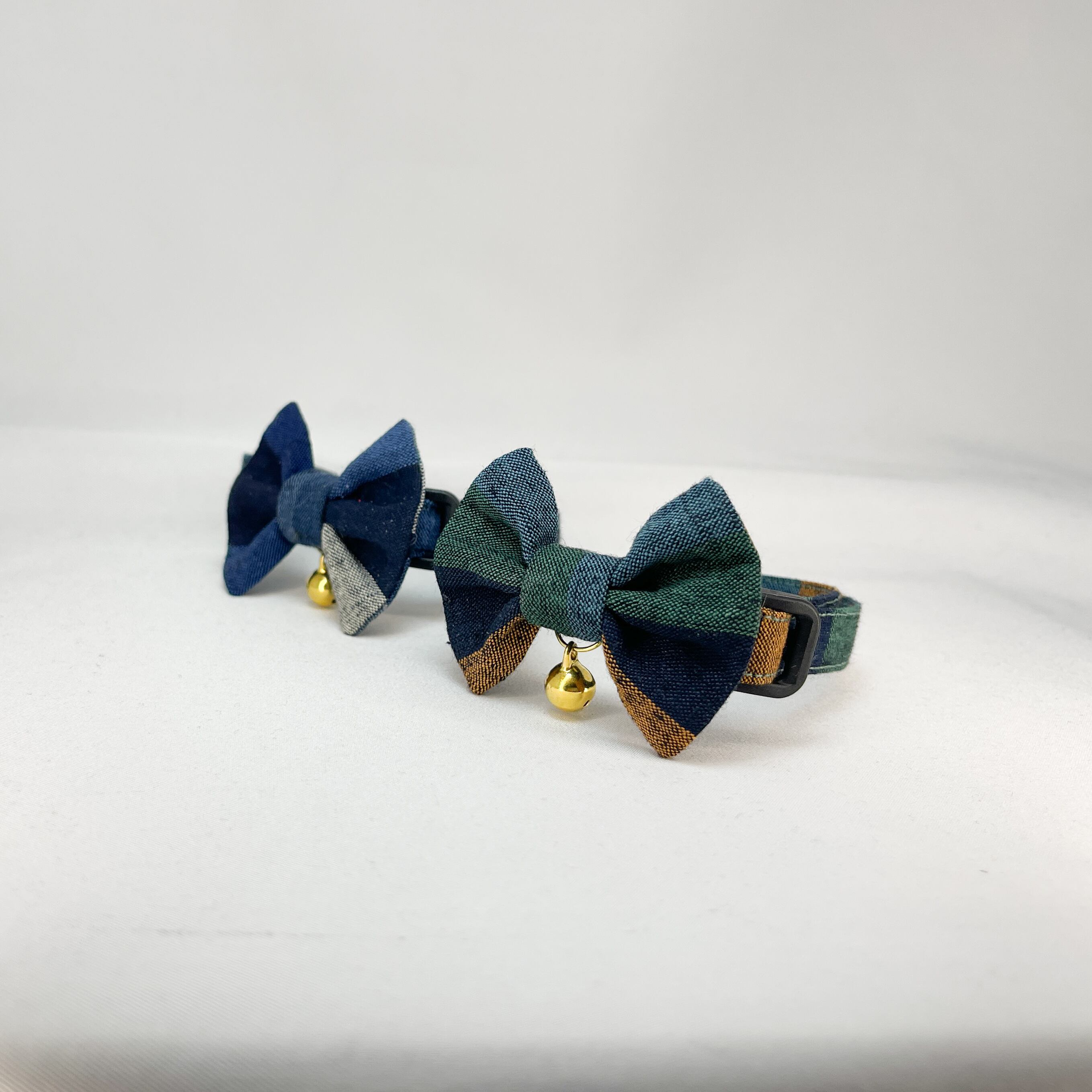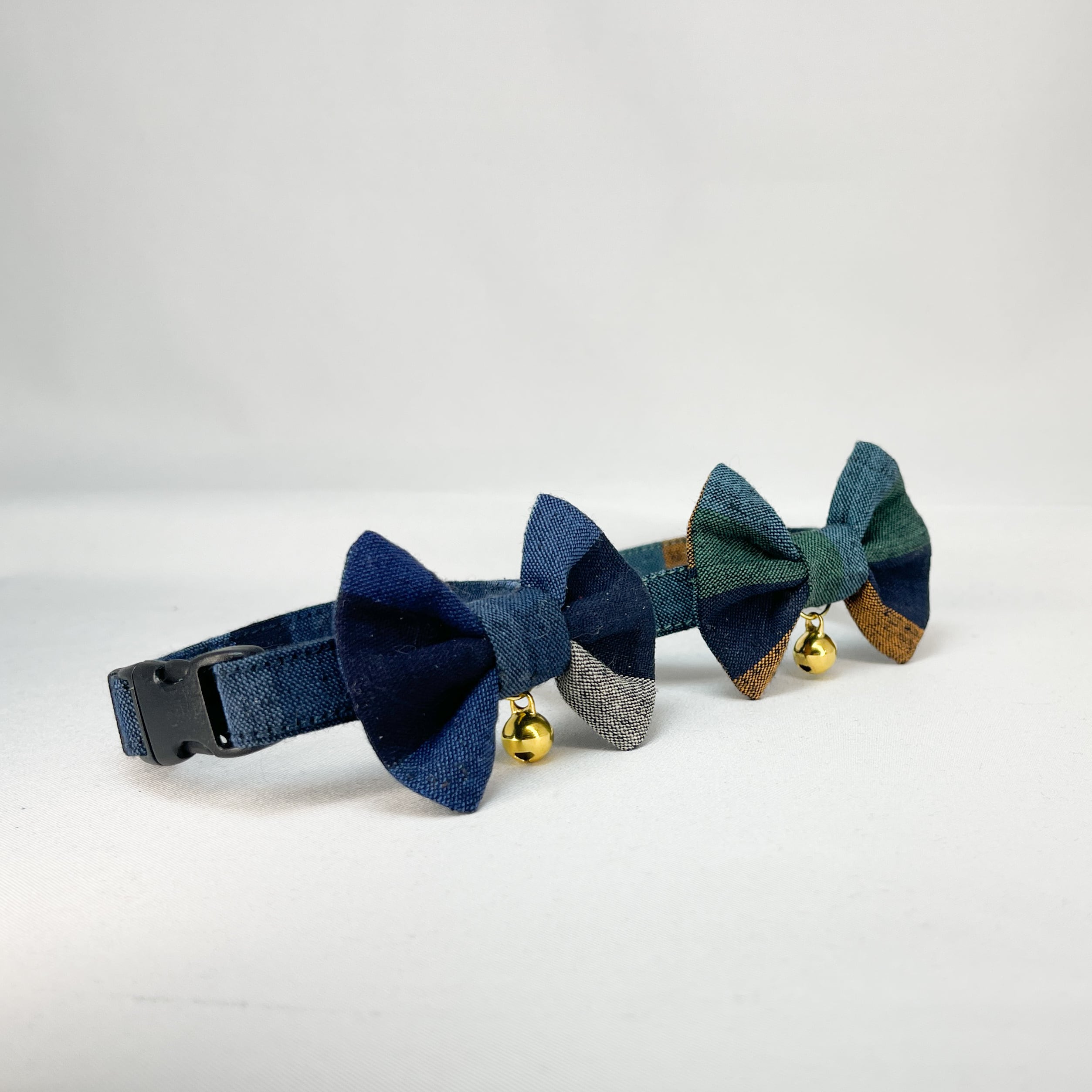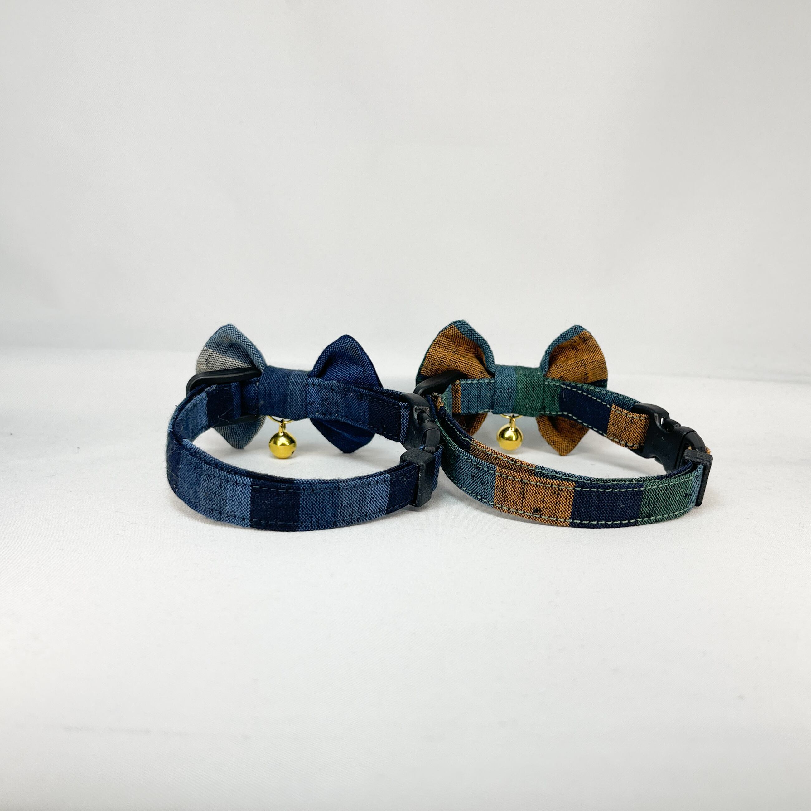 青海・夕紅 (2点セット) 成猫用 ハンドメイド首輪 遠州綿紬