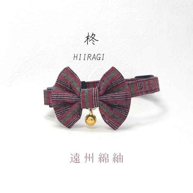柊 成猫用 ハンドメイド首輪 遠州綿紬