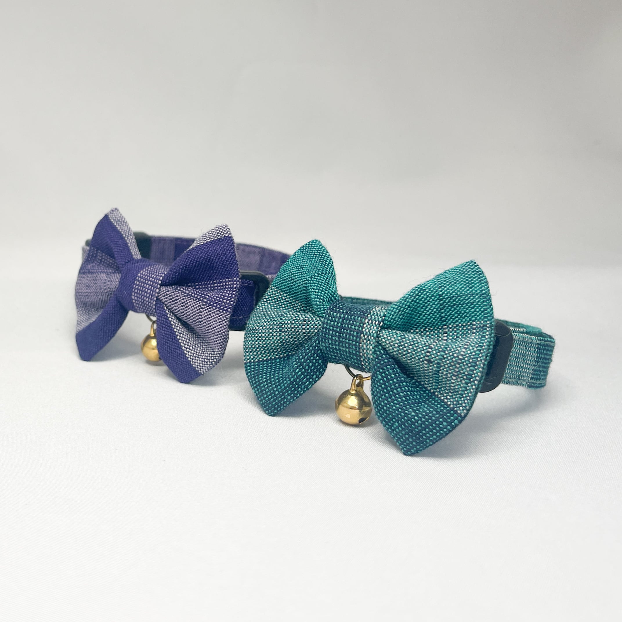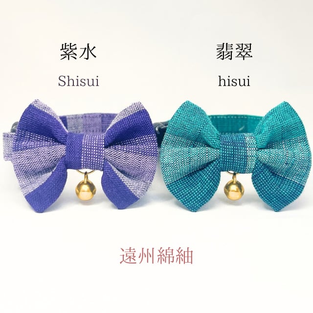 紫水・翡翠 (2点セット) 成猫用 ハンドメイド首輪 会津もめん