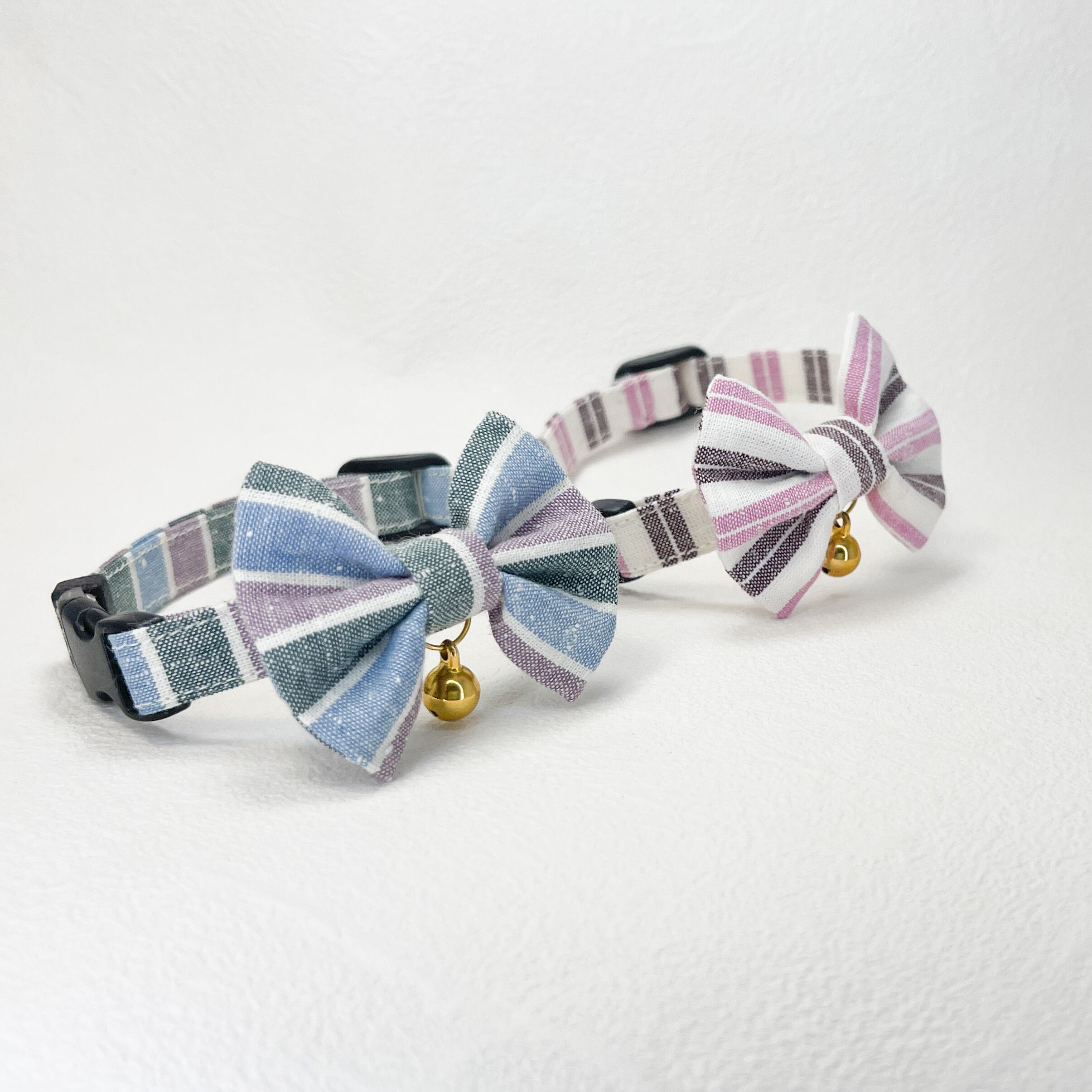 つゆ草・すもも (2点セット) 成猫用 ハンドメイド首輪 遠州綿紬