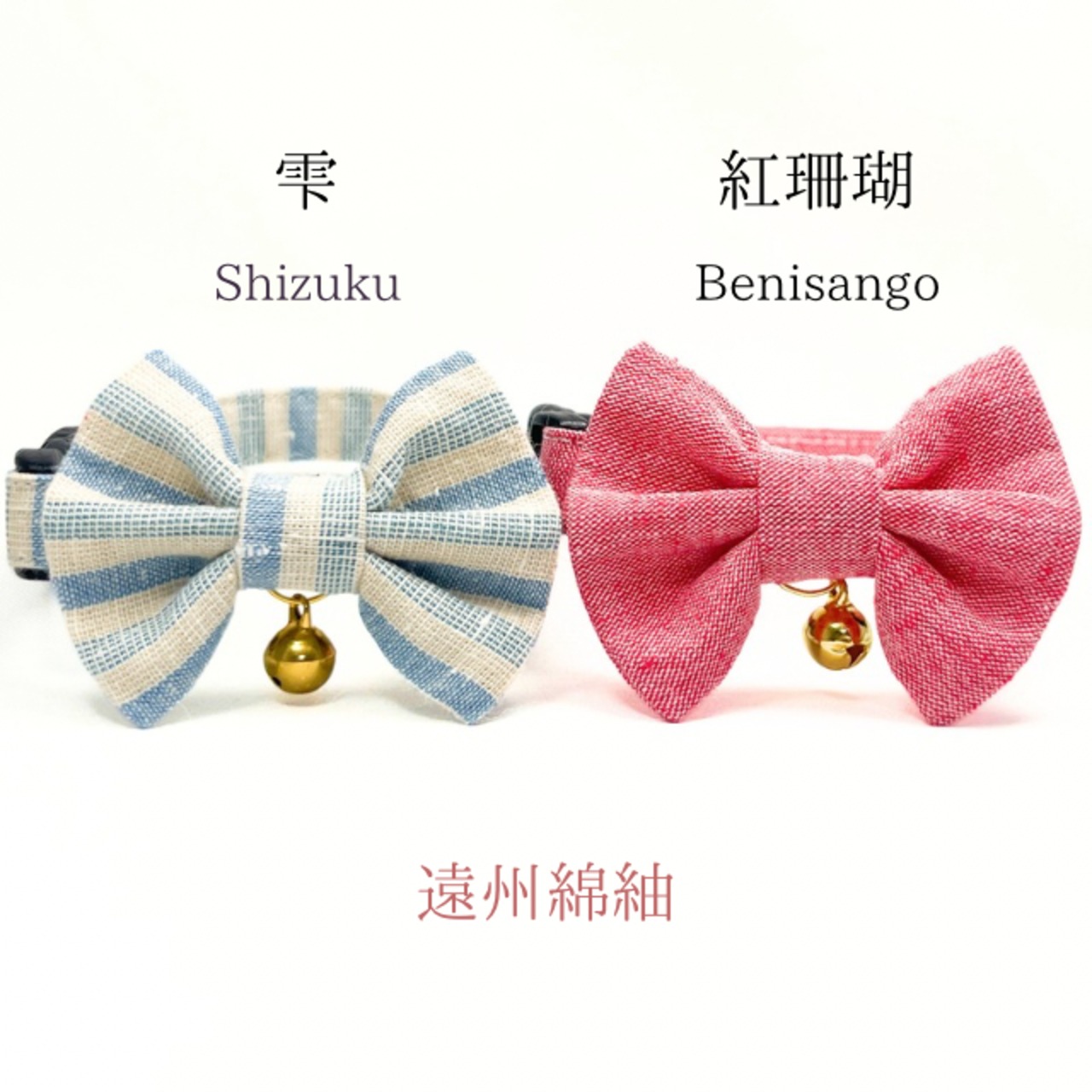雫・紅珊瑚 (2点セット) 成猫用 ハンドメイド首輪 遠州綿紬