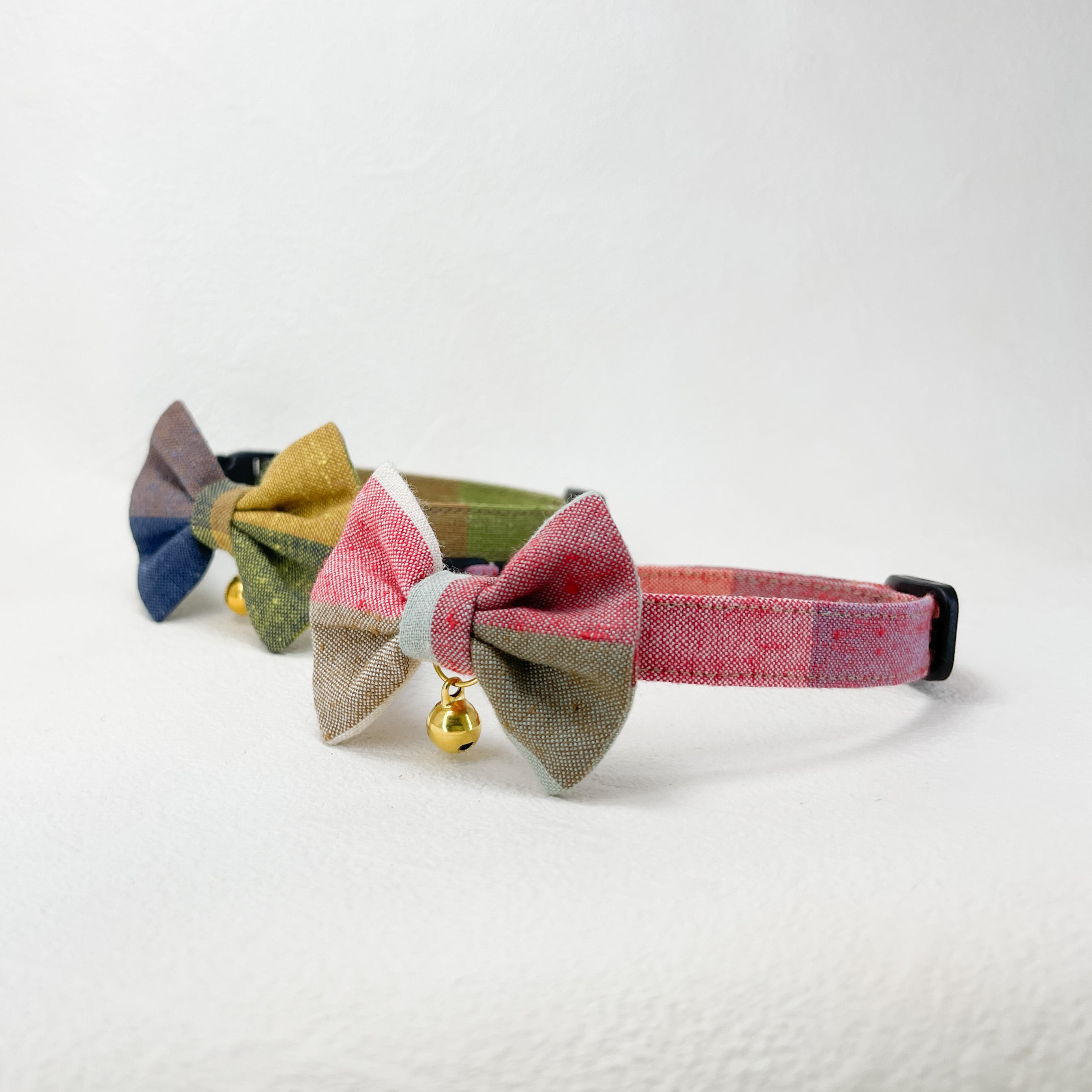 楓・姫りんご (2点セット) 成猫用 ハンドメイド首輪 遠州綿紬