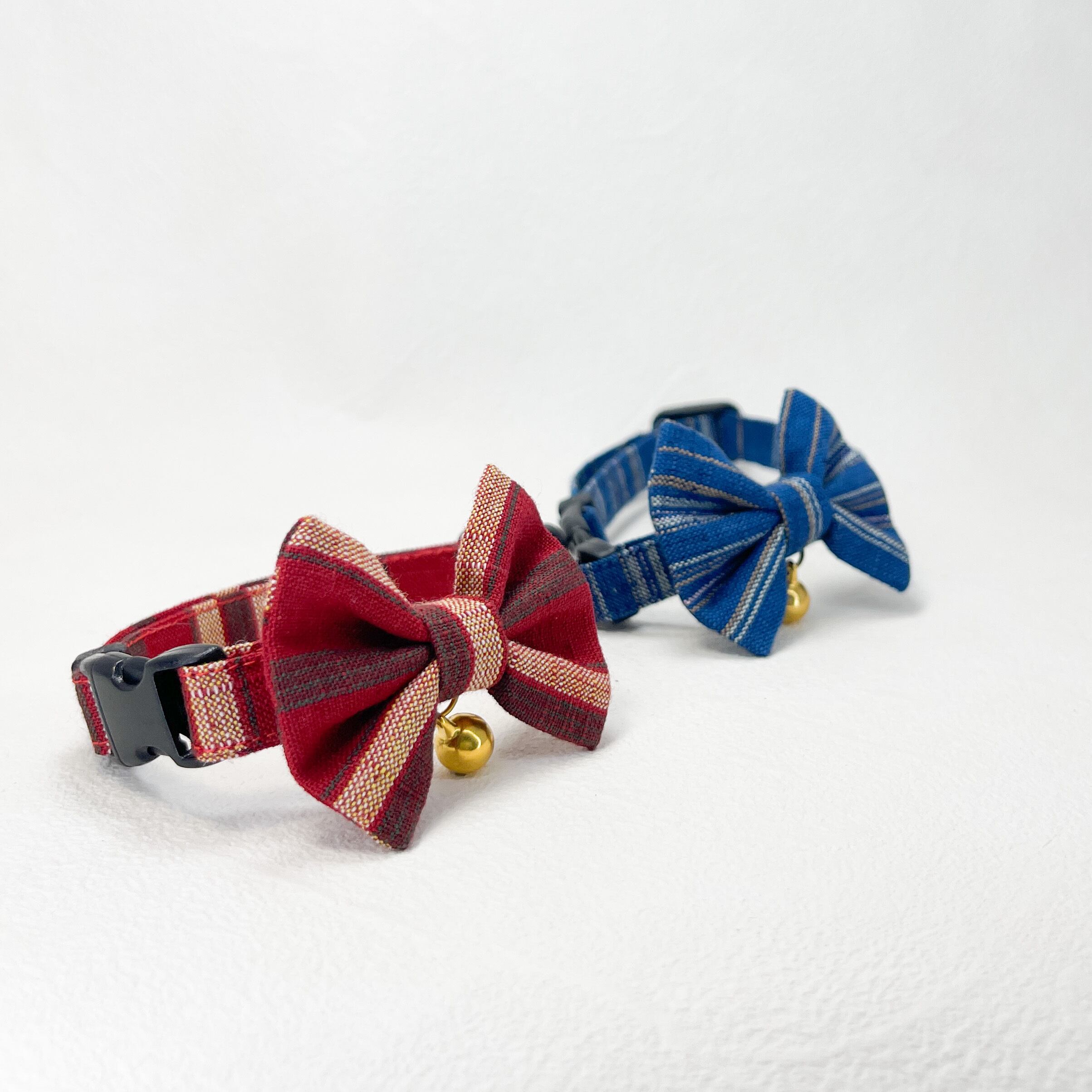 茜 ・ 青龍 (2点セット) 成猫用 ハンドメイド首輪 会津もめん