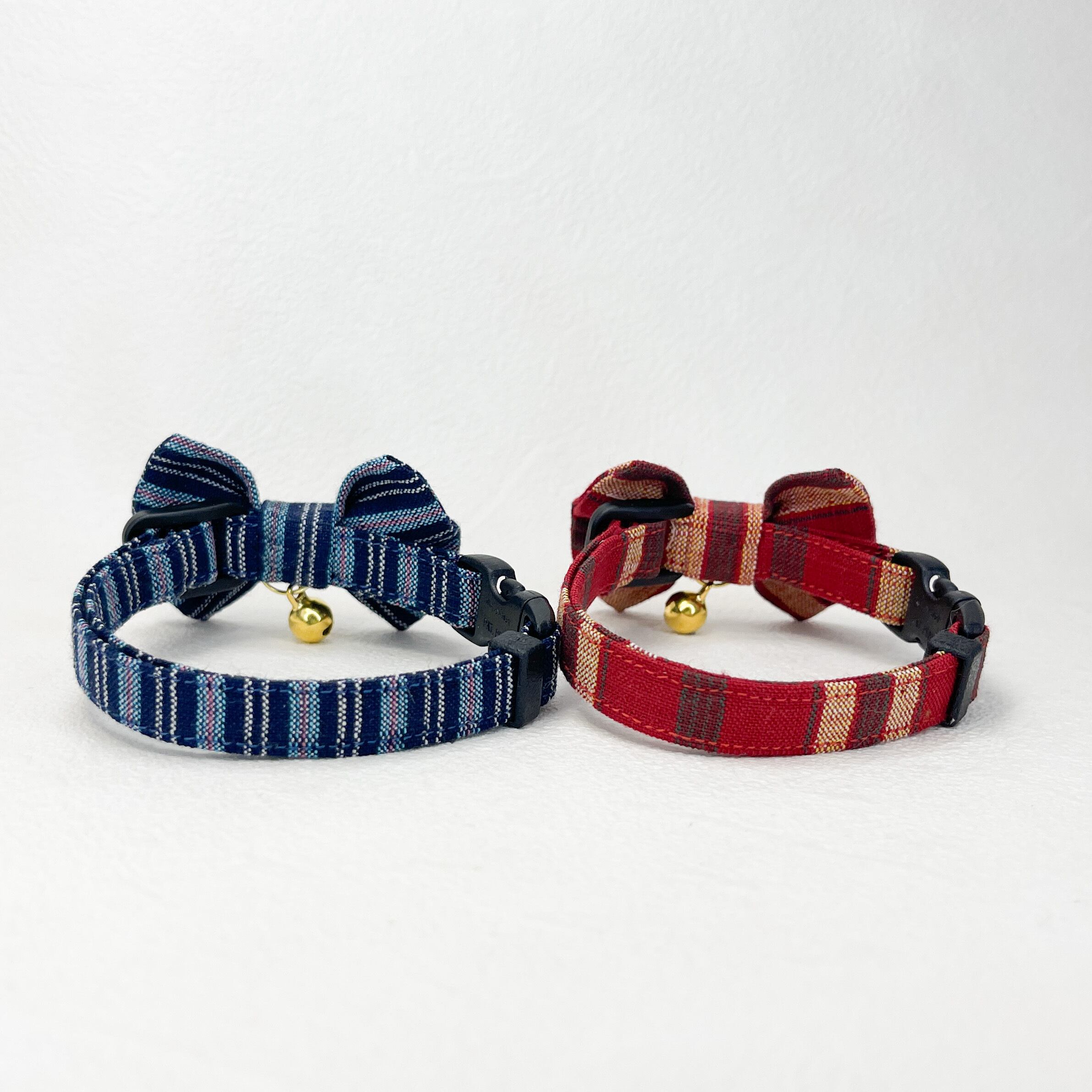 水車・茜 (2点セット) 成猫用 ハンドメイド首輪 会津もめん