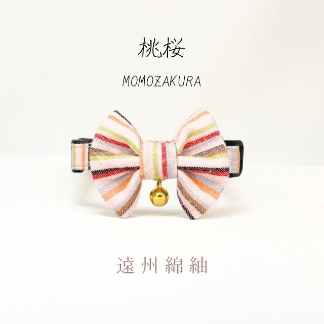 桃桜 成猫用 ハンドメイド首輪 遠州綿紬